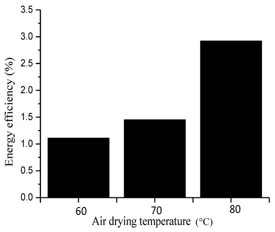 The energy efficiency was calculated (Equation (14)) as the ratio of the water evaporation energy and the total energy used [49].