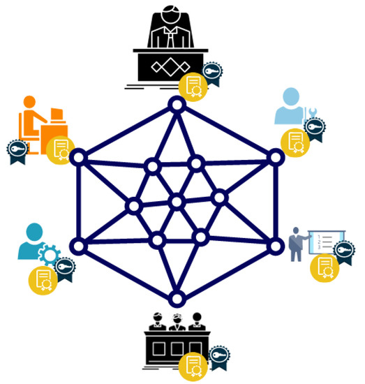 Clients, IT consultancies, data providers, data analysts and government agencies are all examples of nodes in this blockchain (see Figure 2). Each node may have a different level of trust depending on its previous activity, but all must be accredited. The most trusted nodes can be part of the blockchain committee that approves new nodes and validates and creates blocks in the ledger. Smart contracts can also be used by nodes to set up sidechains and send certain information to the main chain. The blockchain infrastructure is the main trust anchor of the total system.