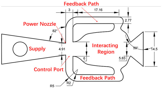 An oscillating jet flow control technology is one of the most popular active flow control technologies. The self-excited oscillating jet actuator [4] has the advantages of a fixed and reliable structure, strong control ability, and wide control frequency band. It is widely used in separation flow control, enhanced mixing, and other aspects. The self-excited oscillating jet actuator causes the main flow in the mixing chamber to swing due to the control of the feedback channel, and the periodic unsteady jet sweeping will be generated at the outlet of the actuator.