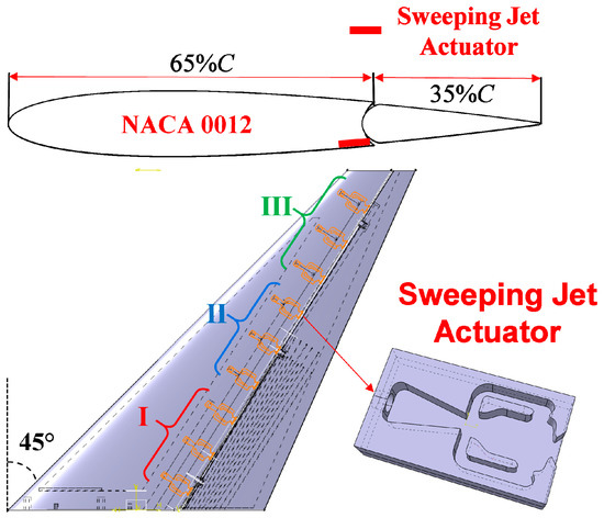 - Melton, L.; Koklu, M. Active Flow Control Using Sweeping Jet Actuators on a Semi-Span Wing Model. In Proceedings of the 54th AIAA Aerospace Sciences Meeting, San Diego, CA, USA, 4–8 January 2016. [Google Scholar] [CrossRef]