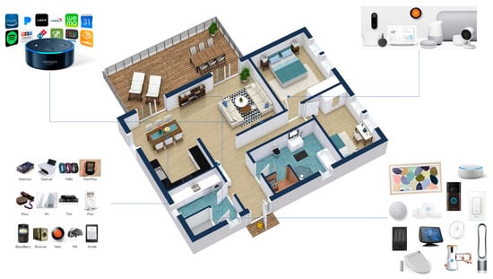 - Hussain, A.J.; Marcinonyte, D.M.; Iqbal, F.I.; Tawfik, H.; Baker, T.; Al-Jumeily, D. Smart home systems security. In Proceedings of the 2018 IEEE 20th International Conference on High Performance Computing and Communications; IEEE 16th International Conference on Smart City; IEEE 4th International Conference on Data Science and Systems (HPCC/SmartCity/DSS), Exeter, UK, 28–30 June 2018; pp. 1422–1428. [Google Scholar] [CrossRef]