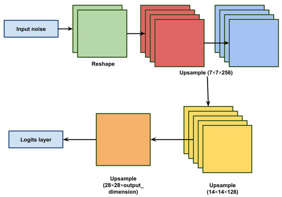 The network of both the generator and the discriminator are optimized while alternately updating them. As a result, both the discriminator and the generator are able to distinguish the input sample from the output sample with greater accuracy. DFNN is called a CNN feature extraction by layer-by-layer learning input image. The batch norm layer is almost always used in the generator and discriminator to normalize the output layers of features, which speeds up training, as well as increases stability. Additionally, the discriminator uses a leaky ReLU activation function to avoid gradient sparseness. The generator’s network structure diagram is represented in Figure 2.