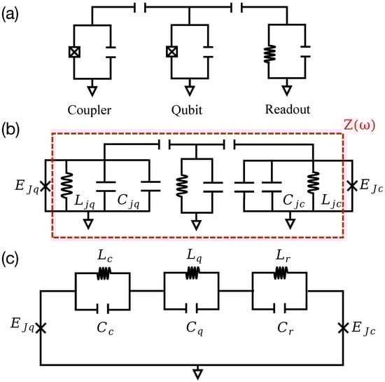 Thirdly, in order to transform the phase of the LC circuit into the phase of the junction, the impedance network is decomposed into a series of parallel LC resonant electric circuits by using the Foster theorem [34] and the two-port network theory [35], as shown in Figure 1c. The Hamiltonian of the circuit is