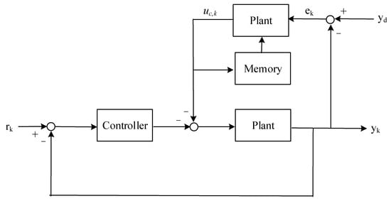 Industrial robots commonly perform repetitive tasks, and the iterative learning control (ILC) is well suited. ILC constantly compensates for repetitive errors during the repetitive operation of the manipulator, improving its overall performance. Various ILC schemes have been studied and widely applied in robotics. A dual-stage ILC was applied to robots with joint elasticity to solve tracking control problems []. The ILC performs as an add-on feedforward controller on the existing real-time feedback controller to improve the performance of the standalone real-time feedback system. Moreover, ILC was utilized in the motion and force control of deep robotic rolling [], vibration control, and trajectory tracking control of a robotic arm system with an input constraint [].