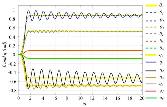 The proposed VH-ILC-EJ controller and its effects for controlling a robotic arm with vibration suppression are illustrated numerically and validated by an example of vibration suppression for a laboratory-developed 6-DOF robotic arm in Figure 1b. The mechanical parameters of the robotic arm and the control parameters are listed in Table 1 and Table 2, respectively.