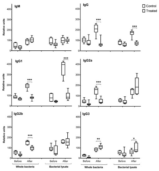 2.4. Determination of Bacteria-Specific Antibodies