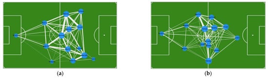 The study of the passing network in this research is not perfect, and there are some shortcomings and much room for improvement. First, owing to the lack of z-axis coordinates in the passing data, we could not distinguish between aerial passes and ground passes, both of which have their own tactical value in soccer games. If we can obtain 3D pass coordinate data including z-axis in future research, we can build a richer pass weighting calculation system. Second, owing to the size of the data source, we only took the perspective of a single team and were unable to build a network model for each of the 20 teams participating in the 2017–2018 season. Obviously, a team’s competitive performance is dynamic and fluctuates with factors such as home and away games and opponent strength. It is sufficient in the time dimension to evaluate a team’s performance during the whole season cycle, but it is insufficient in the control of variables. The currently proposed quantitative index of coordination is highly scalable and can be easily transferred to other teams’ evaluation systems. In future studies, if we can obtain a set of pass-through data that is several times larger than the current data, we will attempt to construct a larger, kinked coordination evaluation matrix for teams.