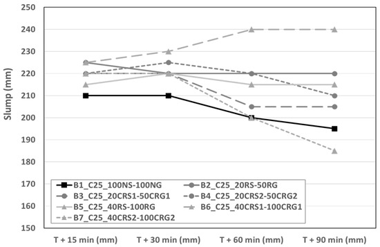 Measured slumps for the C25 concretes.