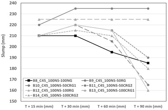 Measured slumps for the C45 concretes.