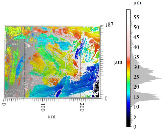 Three-dimensional view of the stitched topography in test case B. Stitching size: 3 × 3.