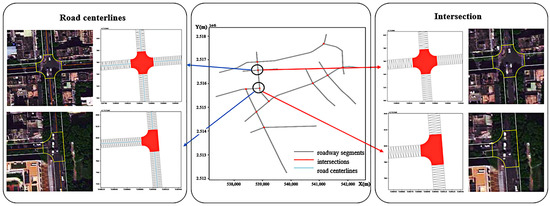 The road layer describes the topological relationship among roadway segments and intersections. A road section line between two adjacent intersections is defined as a road segment, which describes a one-way or two-way connection between two adjacent intersections. Thus, the model of the road layer can be represented as Equation (1):