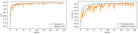 Finally, a sample of the 200 epochs of training the model is presented in Figure 5. The chart shows that the model is not overfitting to the given dataset and the choice of 200 epochs was enough for training the presented model.