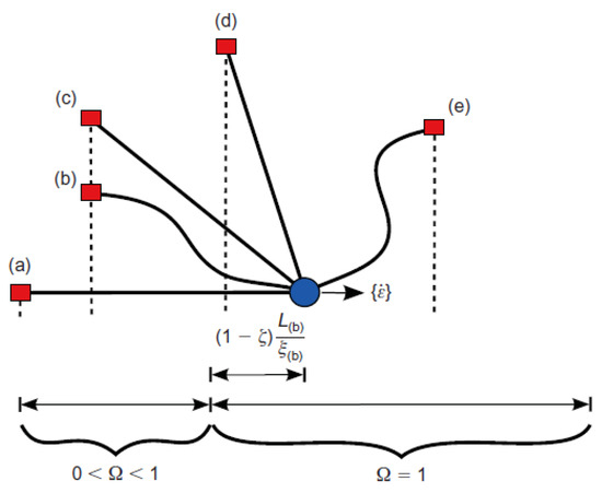 By using the parameter , the threshold string alignment is defined with the value . If is reduced below , then parameter , meaning that strings are becoming less aligned in the direction of strain increment. In this case, full anisotropy is taking place. On the other hand, by increasing over , the parameter starts to reduce according to the transformation from 1 towards 0. In this manner, the off-diagonal terms of matrix will fade approaching the critical state. For a clearer illustration of the transformation, the different cases of brick locations are depicted in Figure 5 according to strain point and strain increment directions for the case of one brick.