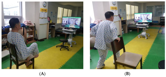 The change in position each week after many repetitions facilitated the adaptation of various motions in different positions. Interestingly, this helped to increase not only the motor learning function but also the proprioception of participants. Moreover, the joint position sense plays a very important role in inducing and stimulating voluntary and involuntary motions by transmitting basic information to the motor control area, such as balance or vestibular sense [30]. However, TKR patients had further decreased joint position sense after surgery than before the surgery. AR training produces a dynamic motion that can increase muscle strength due to trunk and lower-extremity motion control and weight shifting through upper-extremity motion. Contrary to therapist-based training, during AR-based training, patients have to follow a certain rhythm of motion at an altered speed. Likewise, the speed of weight shifting increased with self-activity which induces an increase in joint proprioception in addition to muscle strength and an increase in corresponding balance control capability in the patients. Furthermore, the results of these studies showed that joint range of motion, muscle strength, and balance increased through augmented-reality-based training and increased the ability to support the motion of weight falling on the affected leg during training.