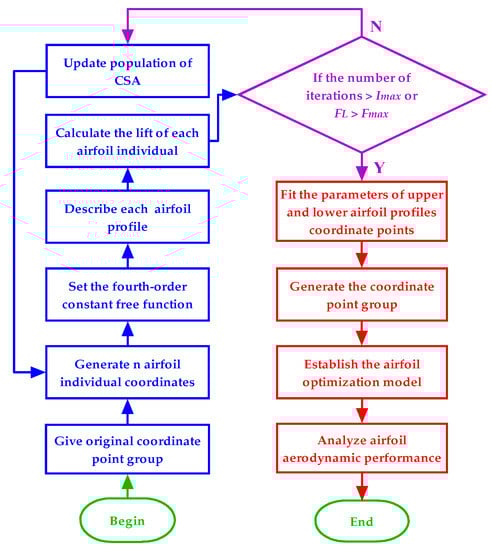 To better observe the optimization flow path, the specific flow chart of the CSA-KJ airfoil optimization method is shown in Figure 1.