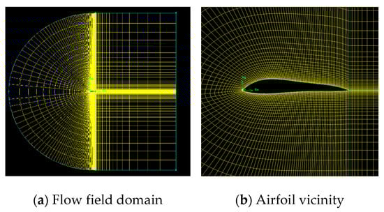 The Spalart allmaras (SA) turbulence model has been widely used in airfoil aerodynamic analysis [21,22,23,24]. Pellerin, Leclaire, and Reggio [25] proposed a turbulence model to analyze the airfoil flow field based on the lattice Boltzmann method and compared it with the results of the SA turbulence model. Rogowski, Hansen, and Bangga [26] applied the computational fluid dynamics FLOWer code to verify the shear stress transport (SST) turbulence model. The corresponding lift and drag coefficients were obtained with the aid of the steady-state calculation on the applied airfoil. Sanei and Razaghi [27] verified that the , SA and the transition SST model had high accuracy when the Reynolds number and the angle of attack were significant (i.e., above 10–12°). Wang, and Zhao [28] used the SA turbulence model to assess the accuracy of the unsteady aerodynamic characteristics of the SC1095 airfoil under free flow velocity/pitch oscillation coupling. From these studies, it can be concluded that the SA turbulence model has a high-level accuracy, so it can be effectively used to analyze airfoil aerodynamic characteristics.