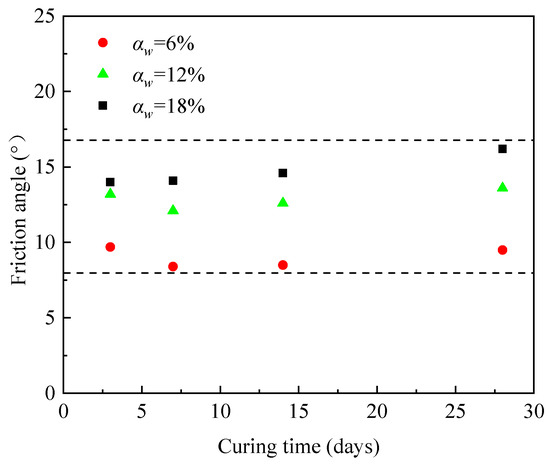As shown in Figure 12, the value of the internal friction angle was almost not affected by the curing time and increased slightly with the cement content.