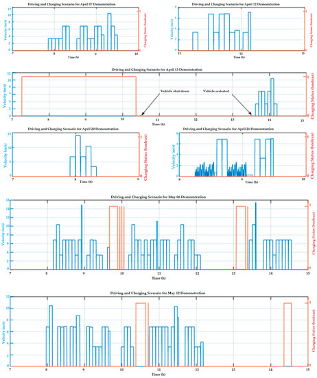 | BCN, 12 m * (4 demos) | Avg. vel. 9.65~26.2 km/h Max. vel. 59.8~78.4 km/h Max acc. 1.30~2.06 m/s2 | BCN, Route H16, All buses: Avg. vel. 9.52 km/h Max. vel. 29.8 km/h Max. acc. 0.51 m/s2 |