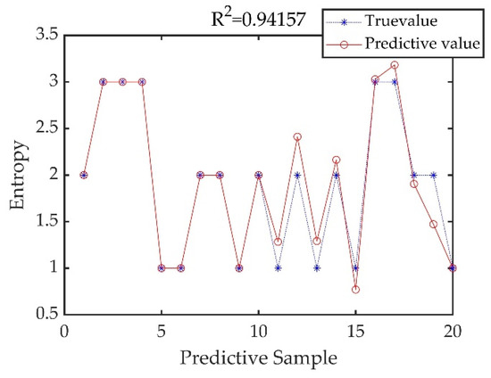 To illustrate the effectiveness of appropriately selecting the K-value on fault classification, an index representing the capacity for identification () of different rail conditions was calculated. The index could be described as a subtraction of the maximum and minimum differences from the mean value of entropy [10], as given in Equation (19).