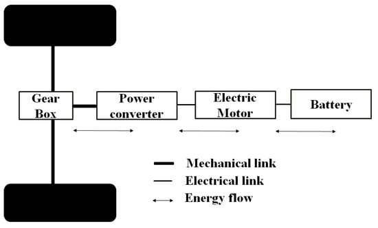Autonomous electric vehicles are widely discussed in the vehicle industry owing to their integrated intelligence systems and effective energy-saving technology. When an electric vehicle applies regenerative braking, the motor acts as a generator that stores kinetic energy in the energy storage device or battery [1]. In the driving state, the motor uses energy from this battery. When applying the brake or during vehicle deceleration, the motor rotates backward and regenerates energy. This is known as a regenerative braking system. The energy flow in regenerative braking systems is depicted in Figure 1. High energy savings are achieved in electric or hybrid vehicles by effectively extracting the energy through the motor when applying the brake [2].