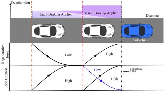 Considering that regenerative braking is relatively weak compared to normal braking, the initial scope of this study was to evaluate the effective performance of the proposed CRBS method when the vehicle was moving in a straight line. The results of the CRBS method showed that the jerk profile of the vehicle was generated by considering the comfort domain as a prime constraint.