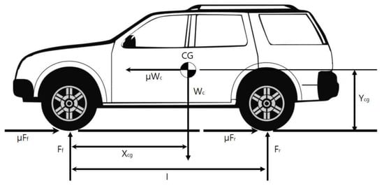 The vehicle’s weight is proportional to the force acting on it. Hence, Equation (6) was used to derive the force required by a vehicle during deceleration as follows [22,23]:
