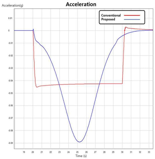 The above researchers evaluated several parameters, such as road speed and traffic information, but failed to design a comfortable system. Xu and Mohamed Elbanhawi [8] measured riding comfort based on the vibrations transmitted to a passenger according to the road and vehicle conditions. In the vehicle driving state, the acceleration acting on the passenger was analyzed by varying the values of the influencing factors. Naseri et al. [9] presented a method to improve riding comfort during braking, in which the electromechanical brake was applied in a longitudinal acceleration direction to reduce jerk (the derivative of acceleration). In addition, they designed a controller to lower discomfort and improve riding comfort.