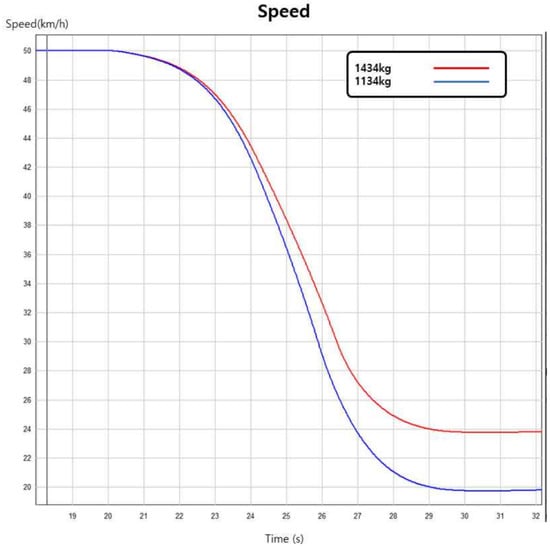 4.2.1. Case 3: Vehicle Weight Comparison (Initial Speed 50 km/h)