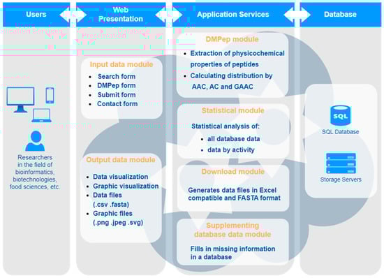 In order to overcome these shortcomings, a web-based open access platform PepLab (www.pep-lab.info, accessed on 4 December 2022) was created. It includes a database of biologically active peptides extracted from food and software tools for their processing and analysis.
