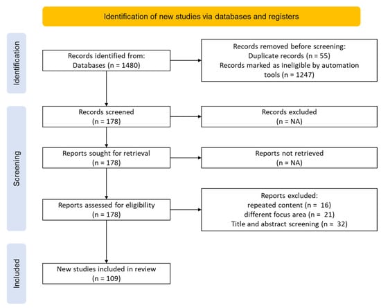 One thousand four hundred and eighty (1480) literatures were identified as potential information sources. These are bounded from the year 2001 up until 2022 that perform SHM system on buildings, bridges, and roads. The acquired review papers are from Western, European, and Asian countries that apply CV techniques, the digital presentation of data, or deep learning with regards to structures to assess the status and provide assessment for if it requires immediate restoration or repair. After acquiring all possible review papers for the topic, fifty-five (55) published articles are tagged as duplicates. The writers of this study each made the decision to adhere to the protocol outlined by our methodology. From there, we applied our inclusion and exclusion criteria and combined our selected literatures. Upon adding them using their respective DOIs, 55 were tagged as duplicates by Zotero. These duplicated items were then merged. These were removed during screening with the other one thousand two hundred and forty seven (1247) research papers that do not complement the goal of the researchers’ current study, answer the RQs, and violate the inclusion and exclusion criteria. After the initial evaluation of papers, one hundred and seventy eight (178) potential literature reviews remained. In the screening phase, researchers have seen sixteen (16) papers having the same contents in their study. In addition, twenty one (21) research papers were focused on the application of vibration-based SHM to structures to assess strength and durability and not in terms of the image-based monitoring technique. There were also thirty two (32) review papers that are irrelevant to the research study since most of them are mainly related to human science courses. During the screening and inclusion process, the authors encountered issues regarding the full text access on some literatures. Full access to some literatures is unavailable due to limited access to the selected databases. To address this, the authors requested a copy of the manuscript directly from the lead authors, while the remaining articles were accessed using a proxy web server. Hence, the researchers have obtained one hundred and nine (109) literatures relevant to the topic.