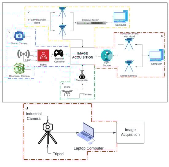 Figure 3 depicts various image-based device implementations for SHM. The discussion of these four options is centered around the complexity and efficiency of the entire configuration of image-based devices and systems for SHM.