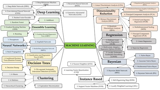 A machine learning-based SHM model, created to learn on its own, combines technical developments in sensors with regard to data collecting and battery life, high-speed internet, and cloud computing [92]. There are three types of ML-based SHM models: supervised, unsupervised, and improved learning [1]. Using a training set of data, supervised learning may be used to train an ML model. The model is categorized as classification if the algorithm’s outputs are autonomous or categorical data, and there is no way to train the dataset for unsupervised learning.