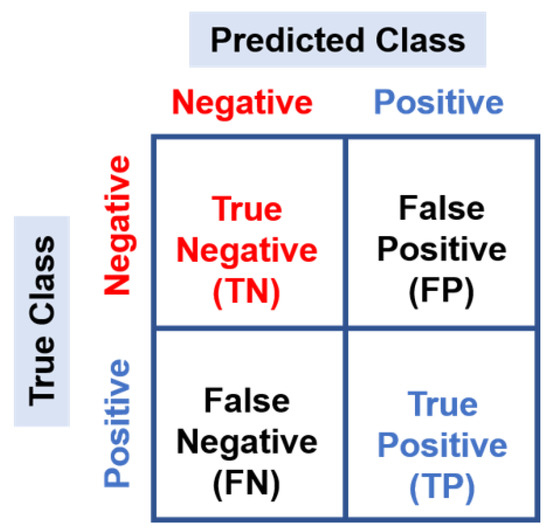 The accuracy, sensitivity, specificity, and precision of each model were calculated based on the confusion matrix containing true negative (TN), false negative (FN), true positive (TP), and false positive (FP) (Figure 2 and Table 3) to evaluate performance.