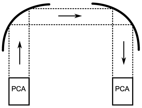 where is the initial frequency and is the end frequency in the sweep, and is the peak envelope of detected photocurrent. With adding the amplitude spectrum in a certain bandwidth, the result represents the sum of the intensity of the broadband signal with equivalent bandwidth. Phase compression is based on Equation (7). If the propagation speed changes in the observed sample, the phase will experience an additional shift, which can be detected in the unwrapped phase. Phase shifts caused by the dispersion in the observed sample are smaller than the wave shift resulting from a frequency sweep. Nevertheless, the latter will always be similar in value, since it depends on the frequency sweep and distance between the PCA emitter and the PCA detector. Phase compression can then be carried out as phase difference detection, and can be estimated as: