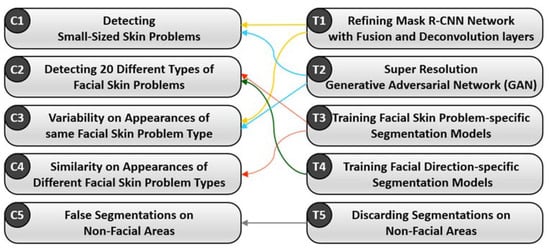 To remedy the technical challenges presented earlier and yield a high performance of detecting and segmenting facial skin problems, a set of 5 effective technical tactics are presented in this section. Each tactic is used to handle one or more technical challenges as shown in Figure 5.
