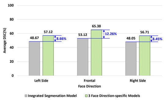 This experiment is to evaluate the performance of facial skin problem diagnosis by integrating all 5 tactics. A conventional Mask R-CNN segmentation model was trained for all the skin problem types. Then, a total of 30 individual segmentation models were trained for the 5 different types of tactics and the 3 facial photo directions.