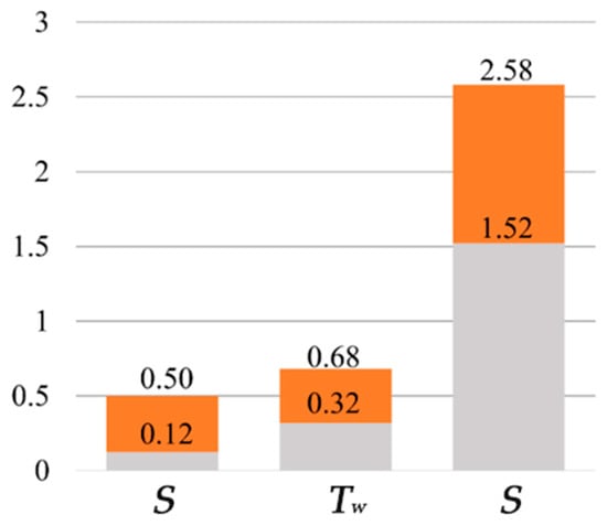 Figure 9 shows the results of the sensitivity effect of Tt at different contact angles θ, different wall temperatures, and different salinity values S on the sensitivity of Tt. According to the calculation of the sensitivity analysis, the sensitivity coefficient |E| was calculated, and the complete freezing time at a contact angle of θ = 76°, salinity S = 10, and wall temperature Tw = −5 °C was selected as the reference value.