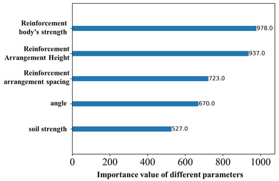 The stability of the tunnel excavation face, i.e., the stability of the slope of the whole excavation face, is influenced by many factors, among which the importance of different parameters on its stability is not the same. Selecting the slope safety coefficient database when only one layer of the MJS zone is arranged, the authors further analyzed the importance of different variables (parameters) on the stability of the slope when using the XGBoost model for prediction.