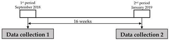 Measurements were taken at two points during the season, specifically in September 2018 (T1) and January 2019 (T2), just prior to a training session. These times were chosen because the monitored parameters were expected to vary significantly during these times [7] (Figure 2).