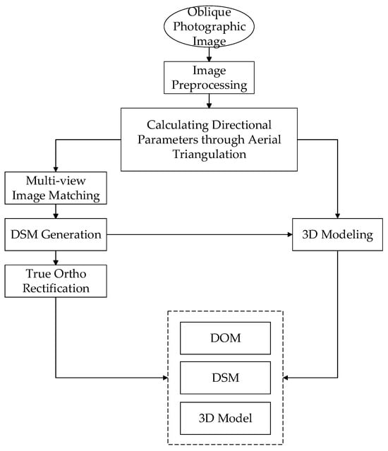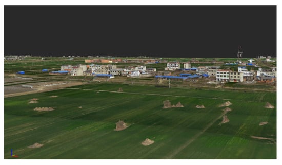The processing of UAV photogrammetric data primarily involves aerial triangulation, a technique that utilizes consecutive aerial images with sufficient overlap to ascertain the ground coordinates of unknown points within the surveyed area. This computation is based on the coordinates of image points in the measurement images and employs the principle of least squares, while also incorporating a limited number of ground control points as constraints [31,32]. In this study, we used the ContextCapture software (version 4.4.10) [33] developed by Bentley to process the UAV-acquired photos. The data processing procedure mainly comprises data import, photo teaming, air triangulation solution, ground control point extraction, and coordinate system conversion, as depicted in Figure 5. The results of UAV oblique photogrammetry data processing were a 3D model (Figure 6), a digital orthophoto map (DOM), and a DSM, and the 3D model and DOM were used to assist the verification of DSM elevation and planimetry accuracy at a later stage. The elevation values of the monitoring points were extracted from the DSM data on 10 April 2021 and 28 June 2022, respectively using, ArcGIS software (version 10.2), as shown in Figure 7, and the difference between the elevations of the two periods is the amount of settlement at each monitoring point during the time period.