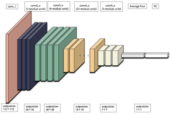 ResNet (Residual Network) is a deep neural network architecture that has gained significant popularity in the field of computer vision. It is designed based on the concept of residual learning, which enables the network to learn residual mappings instead of directly learning the underlying mapping. This approach has proven to be effective in mitigating the vanishing gradient problem commonly encountered in deep neural networks, thereby enabling the training of much deeper networks. In this study, we have specifically chosen ResNet-101, which consists of five convolutional groups. As shown in Figure 4, the first group comprises a single basic convolutional operation, with each operation consisting of a convolutional layer with a kernel size of 7 × 7, a batch normalization layer, and a ReLU layer. ReLU, short for Rectified Linear Unit, is a widely used activation function in deep learning. It is defined as f(x) = max(0, x), where x represents the input value and f(x) represents the resulting output. The primary purpose of the ReLU layer is to introduce non-linearity, enabling the model to learn intricate patterns and relationships within the data. By utilizing ReLU as an activation function, deep learning models can effectively capture complex features and enhance their representation capabilities. The second to fifth convolutional groups consist of 3, 4, 23, and 3 residual units, respectively, with each unit containing three convolutional layers (with kernel sizes of 1 × 1, 3 × 3, and 1 × 1, respectively). Each convolutional group performs a downsampling operation at the end, reducing the size of the feature map by half. Subsequently, through average downsampling, a fully connected layer, and a softmax function layer, the classification results can be obtained.