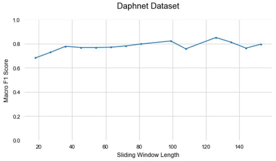 Evaluation of sliding window length on the Daphnet Gait dataset.