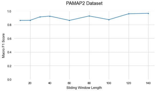 Performance evaluation of sliding window length on the PAMAP2 dataset.