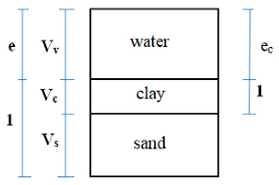 The clay void ratio concept used by Studds [11] and Mollins et al. [10] considers a two-phase sand–bentonite gel system (Figure 1). In this case, the clay is described in terms of the clay void ratio, defined as