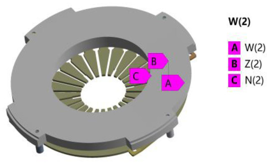 In the simulation, three temperature values of the monitoring points on the pressure plate are extracted, where point A represents the outer diameter, point B represents the middle diameter, and point C represents the inner diameter, as shown in Figure 10.