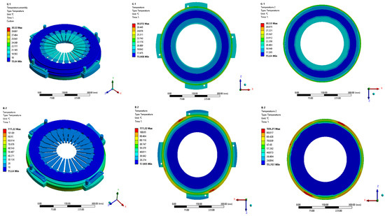 4.2. Temperature Field of the Clutch Assembly during the Last Engagement