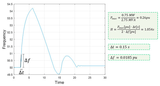 Using per-unit values of the machine, the machine inertia, H, can be calculated through (4). Also, a graphical example is plotted in Figure 4.