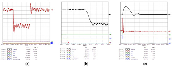 A second set of tests was conducted to observe how the AVR and speed governor controllers behave when working together. Load rejection tests were then carried out to evaluate the transient response to power grid faults. For these tests, the load was set to between 10% and 15% of the generator’s rated load to prevent overstressing the system, which could potentially damage the plant. Once the load reached steady-state operation, the main circuit breaker was turned off to isolate the generator and create an islanded condition.