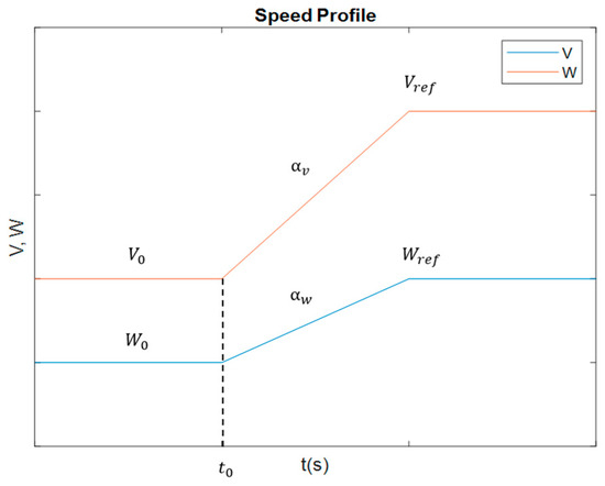 It should be noted that this way of inserting and modeling speed profiles is common among mobile robots, but any other profile could be used. To do this, it would be enough to modify the acceleration and maximum speed parameters (longitudinal and angular).