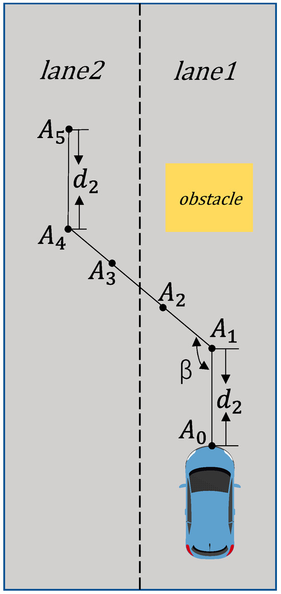 Relative to search and optimization approaches, geometric curve interpolation algorithms offer computational simplicity and facilitate the straightforward construction of optimal objective functions [21]. These algorithms encompass parameterized curves, including but not limited to, circular curves, spiral curves, trigonometric curves, and polynomial curves. Key merits of these algorithms encompass their computational efficiency, intuitive design, and high precision [22]. Such algorithms are prevalently employed in studies focused on obstacle avoidance trajectory planning for intelligent driving vehicles. While paths crafted from line segments, circular arcs, and helical arcs might be apt for human drivers, they do not inherently align with the unique needs of intelligent driving vehicles. Bezier curves and B-spline curves stand as foundational geometries, ensuring continuous curvature at the junctures of path segments [23]. They frequently serve to craft smooth obstacle avoidance paths that are compliant with vehicle dynamic constraints. As noted by He et al. [24], they harnessed Bezier curves for continuous curvature path generation. Nevertheless, the intrinsic characteristic of Bezier curves having locally fixed control points renders them somewhat rigid and less adaptable. Building on this, Noda et al. [25] presented an algorithm predicated on cubic B-spline curves to derive collision-free paths for autonomous vehicles. While this algorithm autonomously crafts paths with sustained curvature, it does exhibit curvature discontinuities at specific nodes. Iwamura et al. [26] explored a quasi-optimal trajectory planning methodology employing cubic B-spline curves, targeting paths for dual independently driven wheeled vehicle platforms. Yet, their investigations overlooked the incorporation of an upper bound constraint on curvature. Taking a different approach, Yang et al. [27] advocated for the modification of path segments not aligning with curvature constraints using B-spline curves. Their aim was to yield paths that harmoniously balance continuity and curvature constraints. A limitation, however, was the absence of a definitive formula for the computation of path curvature. Subsequently, Simic et al. [28] leveraged the innate properties of B-spline curves to diminish the search dimensionality within the bidirectional Rapidly-exploring Random Tree (RRT) algorithm, consequently elevating its search efficiency.